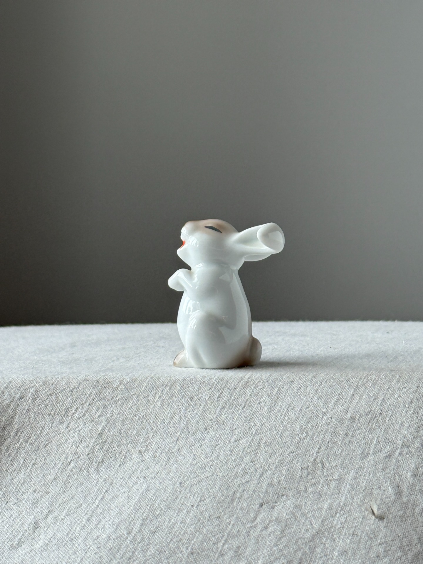 Smějící se zajíček podle ikonického art deco návrhu Maxe Hermanna Fritze pro německou porcelánku Rosenthal. Zajíček je kolorovaný a značený Classic Rose Germany.
