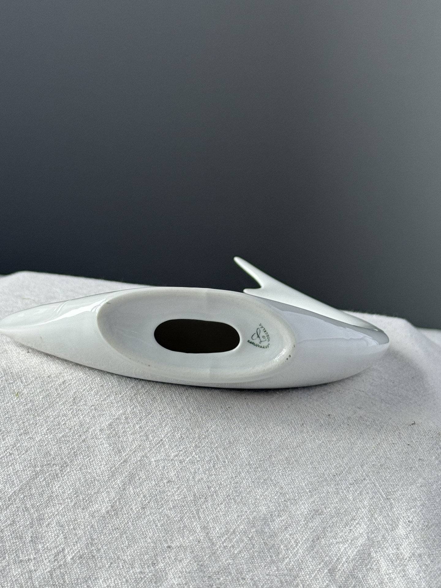 Vzácná soška žraloka podle návrhu Jaroslava Ježka, vyrobená v 60. letech 20. století. Model je ukázkou toho nejlepšího z bruselského designu, díky kterému působí étericky a nadčasově. Soška má zespoda značku karlovarské porcelánky Lesov. Jednalo se o Vývojový závod Lesov, kde vzniklo mnoho návrhů od Jaroslava Ježka, jde tedy o figurku z prvních vyrobených sérií.